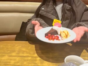 最後までスノボを楽しんだ私たちはそのまま高崎のファミレスへ直行し一緒に夜ご飯を食べました。そこで3月生まれのNちゃんの誕生日もお祝いしました。配膳ロボットが大音量で「Happy birthday」の歌を歌ってくれたので隣の卓に座っていた知らない方にもお祝いの言葉をかけていただきあたたかい気持ちになりました。