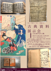 また、今cafeあすなろでは、2階にて古典資料展示会が開催されています。絵画や教科書に載るような文献などが展示されています。実際に手で触れることができたり、月によって内容が異なったりと特別感満載です!興味を持たれた方はぜひcafeあすなろ2階にお越しください。お待ちしております!